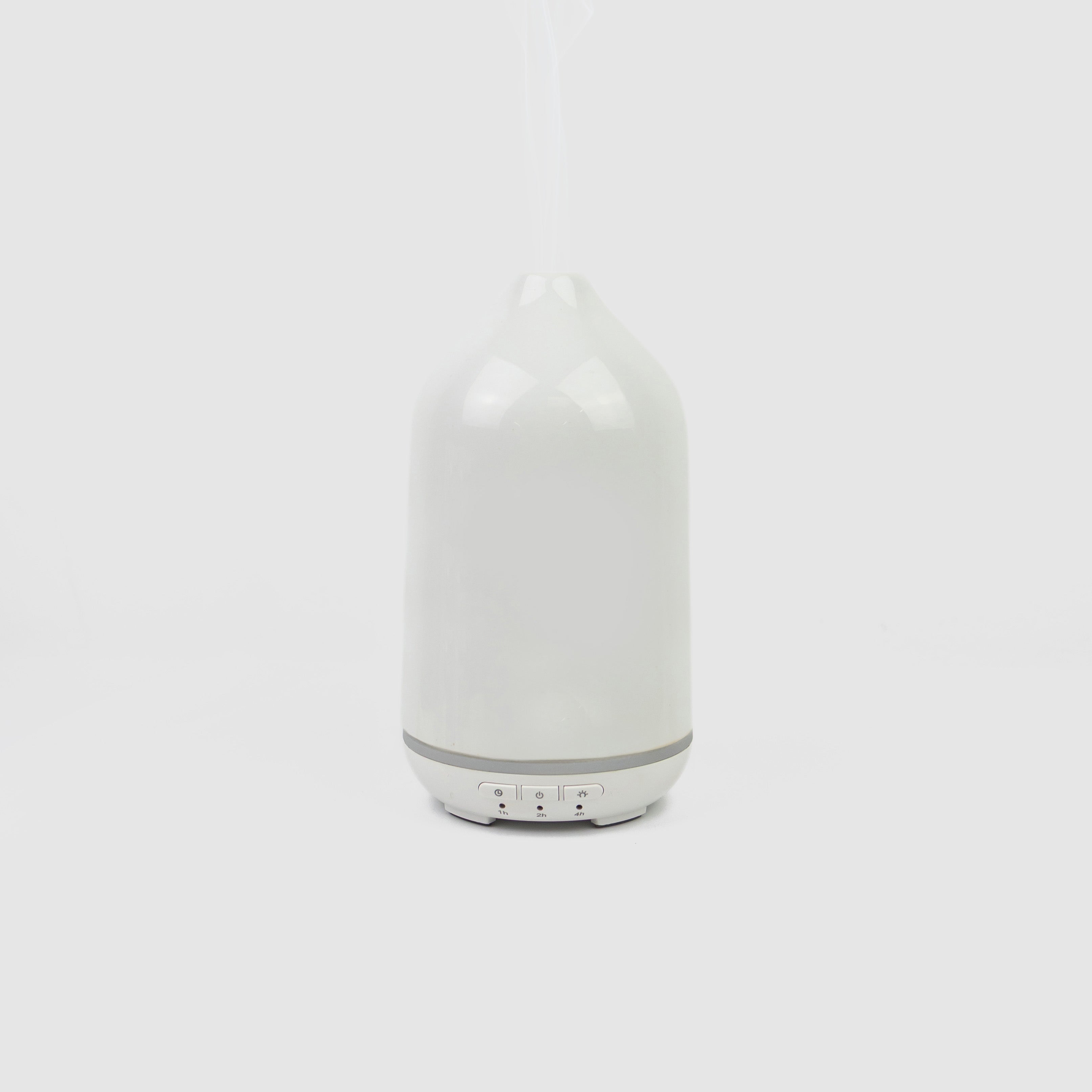 Create a relaxing sanctuary with the timeless elegance of this smooth white ceramic diffuser. Designed to elevate your space, it gently releases a fine, cool mist of aromatherapy into the air while helping to purify and freshen the atmosphere.